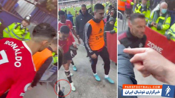 ستاره پرتغالی به خاطر شکست تیمش و البته مصدومیت با ناراحتی و عصبانیت به سمت رختکن در حرکت بود. در همین شرایط، ویدیویی از رونالدو منتشر شد که او لنگان لنگان، گوشی تلفن همراه یکی از هواداران اورتون را را گرفته و به زمین می کوبد. این رفتار ناشایست احتمالا برای رونالدو جریمه و محرومیت به همراه خواهد داشت. این موضوع با واکنش های متعددی در شبکه های اجتماعی همراه شد و بسیاری از کاربران به انتقاد از رونالدو پرداختند. ستاره پرتغالی با انتشار پستی در اینستاگرام از هوادار اورتون عذرخواهی کرد. او نوشت: