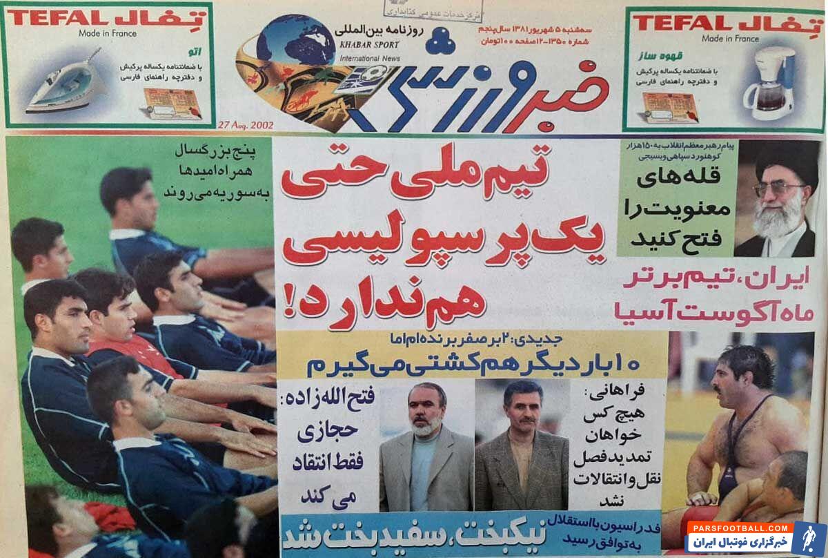 فهرست تیم ملی فوتبال کشورمان اعلام شد و این تیم حتی یک مهره پرسپولیسی هم نداشت و همین مسئله تبدیل به تیتر اصلی روزنامه خبرورزشی در پنجم شهریور ماه ۱۳۸۱ شد.