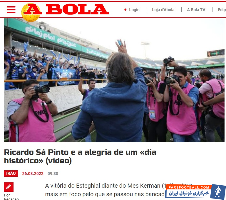 این رسانه پرتغالی، نوشت: پیروزی ۱-۰ استقلال مقابل مس کرمان بیشتر به خاطر اتفاقات روی سکوها بود تا داخل زمین. برای اولین بار مسابقات فوتبال در لیگ ایران با حضور بانوان برگزار شد.