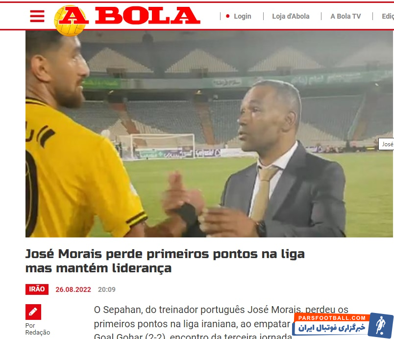 نشریات پرتغالی به توقف سپاهان با هدایت مورایس در لیگ ایران پرداختند.