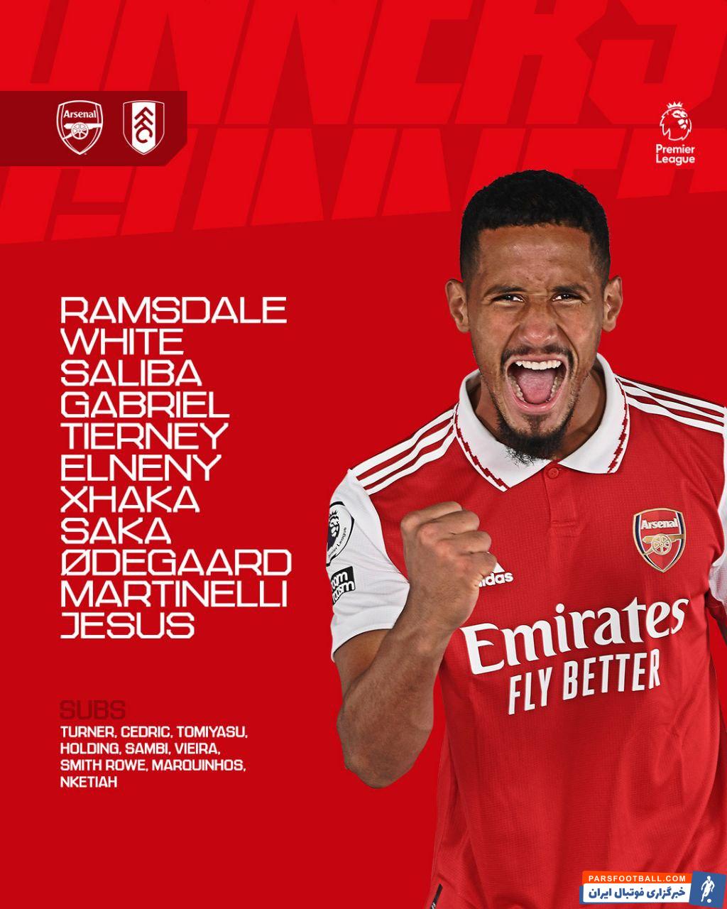 آرسنال (۳-۳-۴): رمزدیل | بن وایت، ماگالاش، سالیبا، تیرنی | الننی، اودگارد، ژاکا | ساکا، ژسوس، مارتینلی