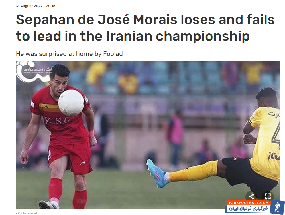 نشریه رکورد پرتغال از شکست سپاهان مقابل فولاد در دقایق پایانی صحبت کرد.