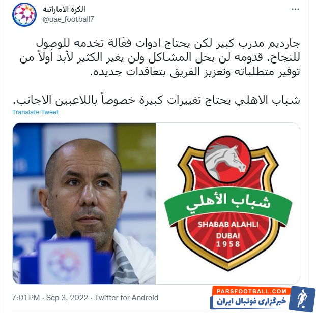 صفحه خبری «الکره الاماراتیه» در این زمینه نوشت: ژاردیم مربی بزرگی است اما لوازم لازم در داخل زمین نیاز دارد تا بتواند تفکراتش را اجرایی کند. شباب الاهلی نیاز فوری دارد تا در لیست لژیونرها تغییراتی را انجام دهد.
