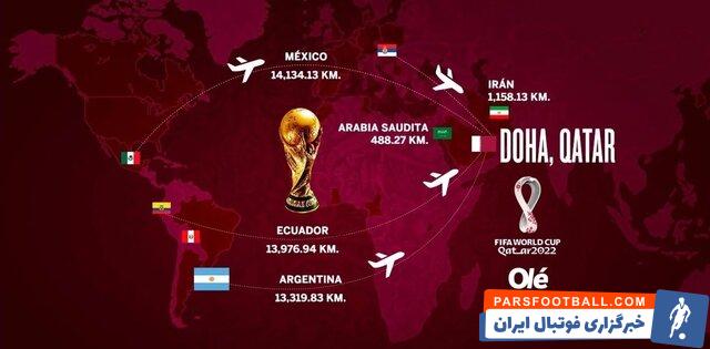 اگر در مورد تیمهایی صحبت کنیم که با حداقل زمان به قطر سفر می کنند، باید به عربستان سعودی رقیب آرژانتین در گروه C اشاره کرد. این کشور تقریباً ۵۰۰ کیلومتر با قطر فاصله دارد. در رده دوم ایران است که با بیش از ۱۰۰۰ کیلومتر فاصله در رده دوم است و در رده سوم صربستان است که در فاصله ۳۵۰۰ کیلومتری میزبان جام جهانی قرار دارد. امارات متحده عربی، یکی دیگر از تیم هایی است که در پلی آف بازی خواهند کرد و تقریباً ۴۰۰ کیلومتر با قطر فاصله دارد و در صورت صعود در رتبه نخست نزدیکترین کشورها قرار میگیرد.