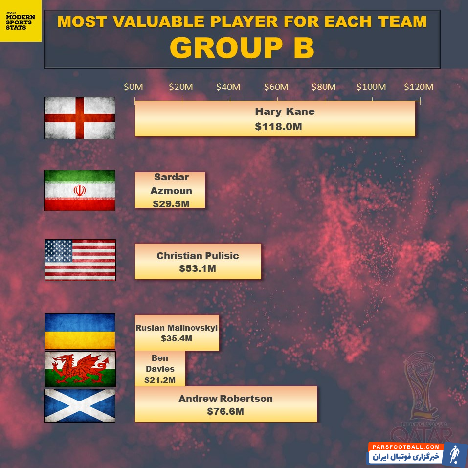 رسانه آمریکایی به معرفی گران ترین ستاره های گروه دوم جام جهانی ۲۰۲۲ قطر پرداخت.