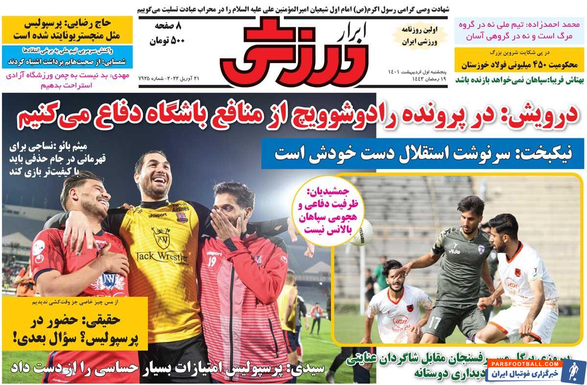 روزنامه ابرار ورزشی| درویش: در پرونده رادوشوویچ از منافع باشگاه دفاع میکنیم