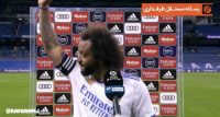 تشویق مارسلو پس از پیروزی رئال مادرید مقابل ختافه و در حین مصاحبه / فیلم