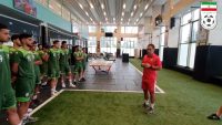 صحبتهای مهدی مهدوی کیا، سرمربی تیم ملی امید ایران پیش از شروع تمرین صبحگاهی تیم ملی امید در مرکز “پک” با شاگردانش